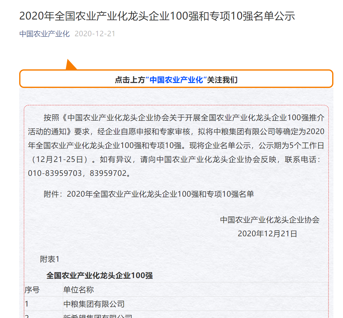 按照《中國農(nóng)業(yè)產(chǎn)業(yè)化龍頭企業(yè)協(xié)會關(guān)于開展全國農(nóng)業(yè)產(chǎn)業(yè)化龍頭企業(yè)100強推介活動的通知》要求,經(jīng)企業(yè)申報和專家審核,公司成功獲評2020年全國農(nóng)業(yè)產(chǎn)業(yè)化龍頭企業(yè)外貿(mào)出口10強。